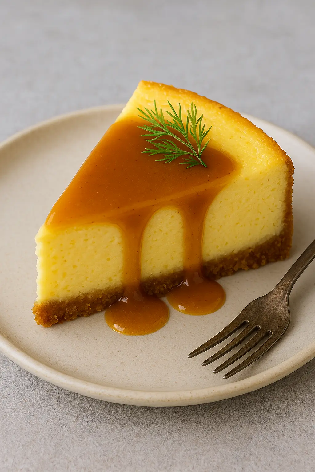Cheesecake citron-aneth nappé crème de rhum vieux caramel